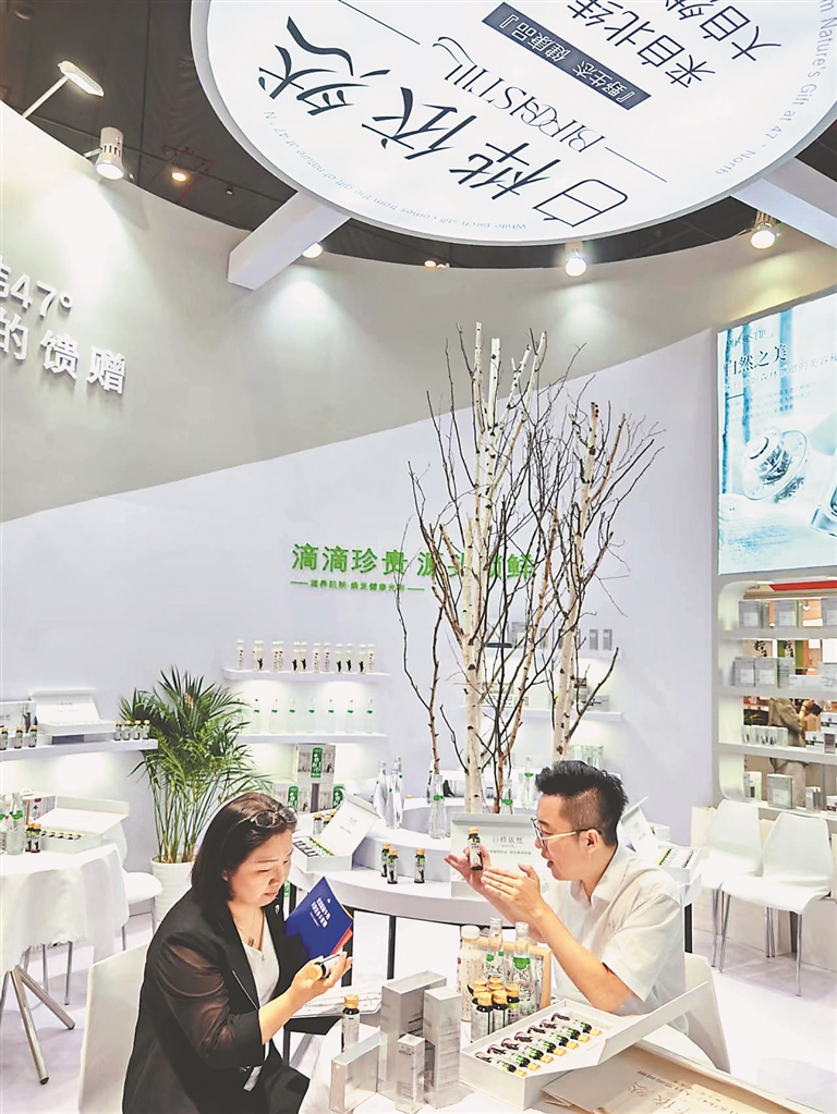“產(chǎn)品所用的白樺汁原料源自鐵力市,這里處在北緯47°小興安嶺的黑土地上?!焙邶埥陼钥萍加邢薰究偨?jīng)理馬光西介紹,公司充分利用龍江“九珍十八品”資源,由雨曉集團(tuán)與清華大學(xué)深圳科研團(tuán)隊(duì)合作,運(yùn)用先進(jìn)技術(shù)開發(fā)提煉出白樺汁精華,為消費(fèi)者不斷提供囗感獨(dú)特的綠色飲品、化妝品。現(xiàn)在企業(yè)庫(kù)存清空,鐵力工廠正加班加點(diǎn)生產(chǎn)。本次展會(huì)的火爆出圈,讓企業(yè)對(duì)白樺汁系列產(chǎn)品走向世界市場(chǎng)更加充滿信心。