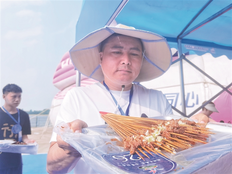 來,嘗嘗我家小串的味道。本報記者 吳樹江攝