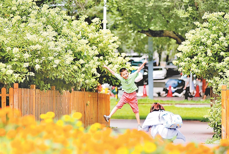 29日,哈爾濱市兒童公園內(nèi),數(shù)十株圓錐繡球正陸續(xù)開(kāi)花。這些美麗的花朵為夏日冰城再添一道風(fēng)景,吸引了許多游客前來(lái)觀看、拍照。