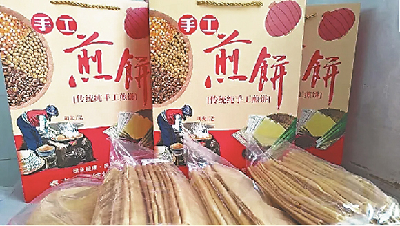 村民高桂梅的攤煎餅手藝在十里八村小有名氣。走進高桂梅家,一陣陣煎餅香味撲面而來,七八位婦女忙碌著,研磨、打糊、擠糊,攤餅、烘焙、成型,不到一分鐘,一張薄如蟬翼的煎餅就攤好了,翻動間,香噴噴的氣息就飄滿整個院子,隨著工人們將這些煎餅放入包裝袋,它們即將走向萬千老百姓的餐桌。
