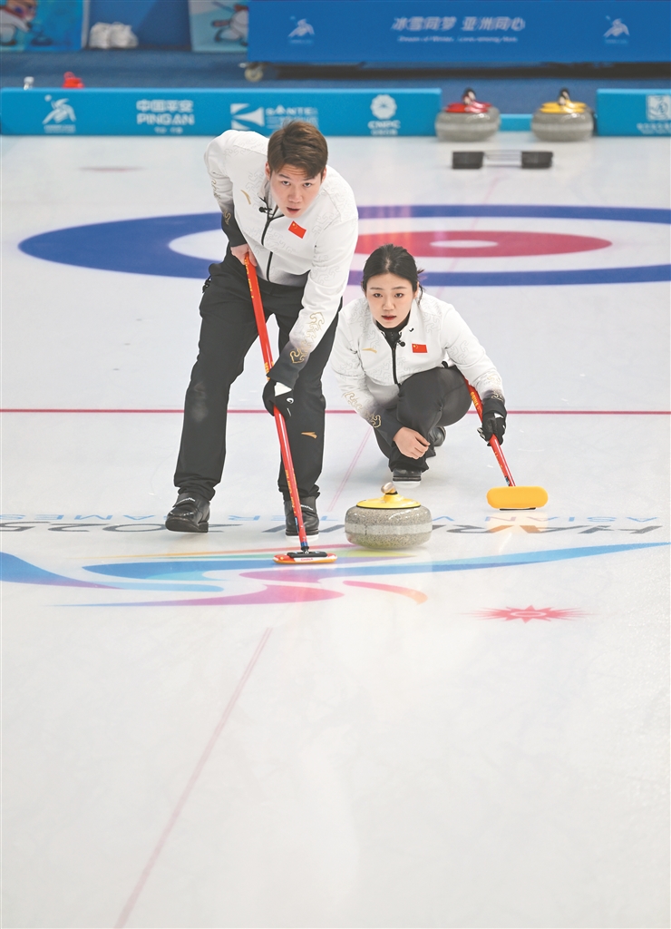 本報6日訊(記者王志強(qiáng))6日,在冰壺混雙循環(huán)賽最后一輪比賽中,中國隊王智宇/韓雨組合以10比1大比分戰(zhàn)勝卡塔爾隊,以戰(zhàn)績排名小組第一,率先進(jìn)入半決賽。