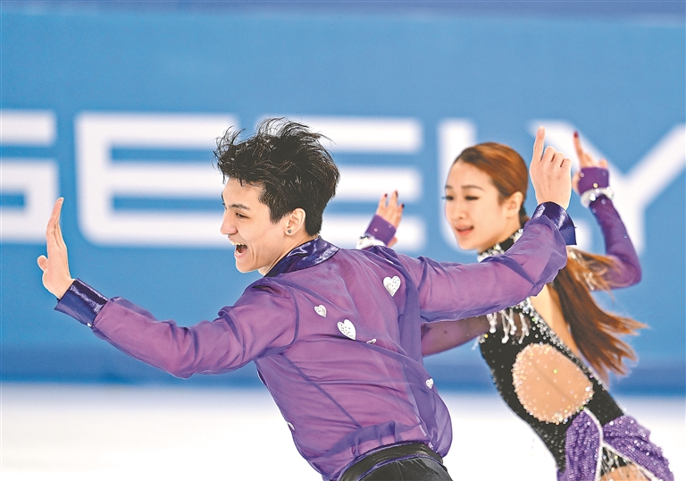 11日下午,在第九屆亞冬會花樣滑冰冰上舞蹈韻律舞比賽中,首次參加亞冬會的00后中國組合任俊霏/邢珈寧以64.29分暫列第二。任俊霏/邢珈寧以放克組合地火風(fēng)樂隊(duì)的作品混編為伴奏,頗有復(fù)古迪斯科舞風(fēng),兩人配合嫻熟,曲舞合一,優(yōu)美的舞姿和精妙的配合引來主場觀眾的陣陣掌聲。