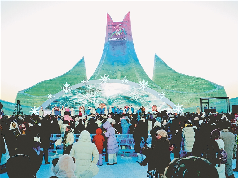 精美與靈動相互交織,園區(qū)內亞冬會氛圍濃厚?!拔覀冊趫@區(qū)內看到很多亞冬會元素的冰雪景觀,像雪雕‘濱濱’‘妮妮’、會徽大地景觀等,準備逐個打卡。”山東游客許多開心地說。