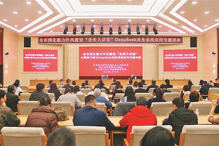 本報訊(記者 趙一諾)為加快提升機關干部數(shù)字素養(yǎng)與智能技術應用能力,助力政務工作智能化轉(zhuǎn)型升級,近日,哈爾濱市直機關工委、哈爾濱市科協(xié)、哈爾濱工業(yè)大學繼續(xù)教育學院聯(lián)合舉辦哈爾濱市深化能力作風建設“業(yè)務大講堂”——AI模型介紹與DeepSeek政務系統(tǒng)應用專題講座。哈爾濱市直機關和部分區(qū)縣共200余名機關干部參加學習。