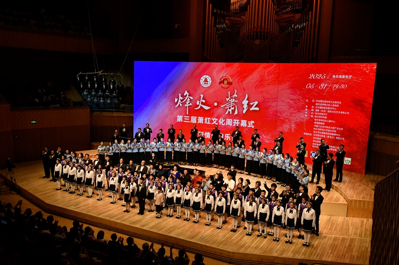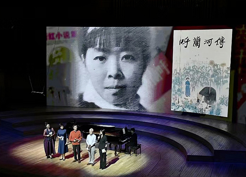 “蕭紅已成為黑土地的精神路標!蕭紅作品中對人民的悲憫、對命運的抗爭、對家國的摯愛,恰是東北文化與中華民族精神的堅韌內(nèi)核!”由著名主持人敬一丹擔(dān)任誦講人,開幕式演出以“情景音樂會”為創(chuàng)新形式,分《序曲》《松花江上》《抗戰(zhàn)的烽火》《文脈永續(xù)》四大篇章展開。音樂會在《呼蘭河邊的小姑娘》合唱中拉開帷幕,童聲與交響樂交織再現(xiàn)蕭紅筆下菜園里的純真目光;情景朗誦《呼蘭河傳》以抒情語調(diào)勾勒東北風(fēng)情長卷,喚醒觀眾對蕭紅故鄉(xiāng)的想象。