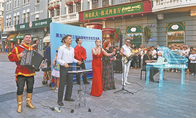 6月22日晚,由省文旅廳主辦的黑龍江省第三屆中俄地方文化藝術(shù)季——“街頭藝術(shù)之遇見俄羅斯”演出活動(dòng)在中央大街啟動(dòng)。來自俄羅斯的表演團(tuán)隊(duì),通過歌唱、舞蹈、音樂等多種藝術(shù)形式,為觀眾呈現(xiàn)了精彩演出。