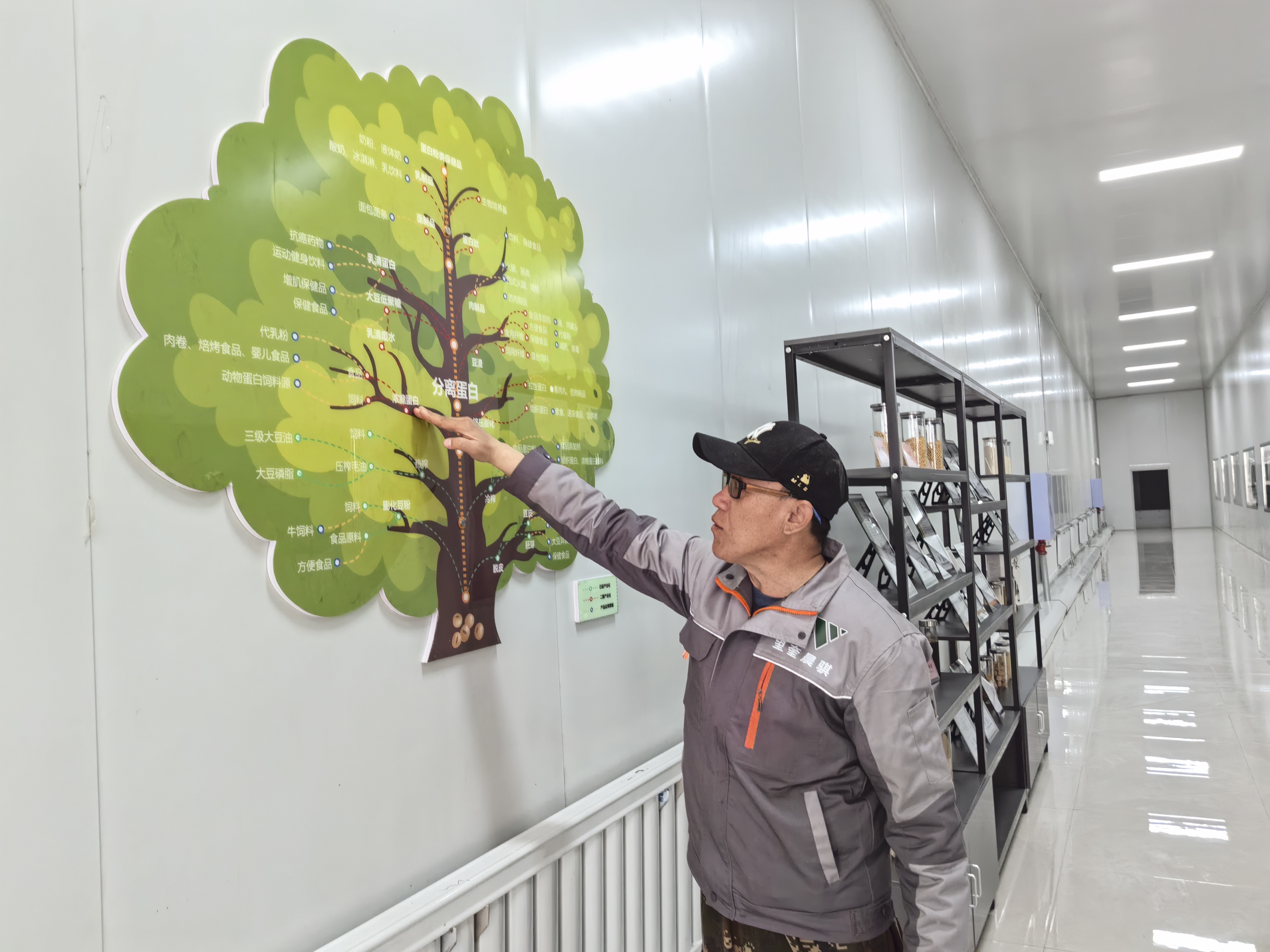 在成品車間,記者看到一張“樹狀圖”,清晰展示著大豆深加工的產(chǎn)業(yè)圖譜,藍(lán)色圓圈代表產(chǎn)品應(yīng)用領(lǐng)域,綠色圓圈代表已經(jīng)實(shí)現(xiàn)產(chǎn)業(yè)化的領(lǐng)域,紅色圓圈則代表二期即將上馬的加工項(xiàng)目。從“樹狀圖”上,可見晨騏農(nóng)業(yè)強(qiáng)勁發(fā)展的勢(shì)頭。