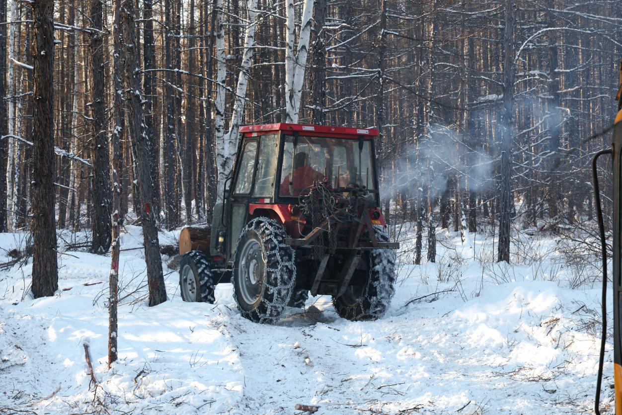 阿木爾林業(yè)局職工駕駛拖拉機(jī)向作業(yè)場(chǎng)地駛?cè)ィㄍ趿?攝)