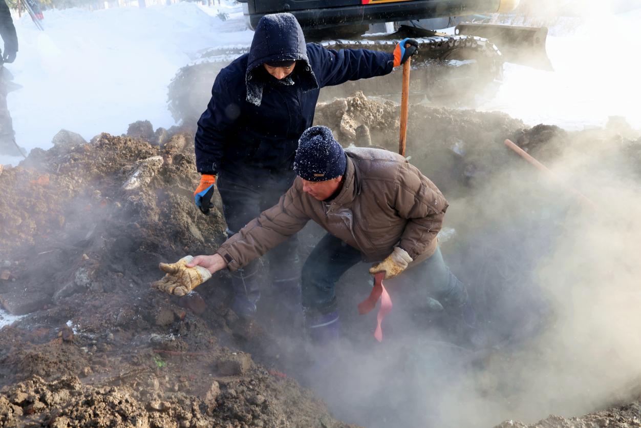 零下40℃的嚴寒中,搶修人員的臉頰、帽子很快結滿冰霜,卻絲毫沒有退縮。他們相互配合,合力抬起管道、站在冰冷水坑中徒手作業(yè),爭分奪秒更換新軟接頭,于13時20分完成分線管道搶修。就在大家打開閥門準備恢復供暖時,主管線突發(fā)新漏點,搶修人員來不及休整,立即投入新一輪搶修,直至15時30分,主管線漏點徹底修復,全線供暖恢復正常。
