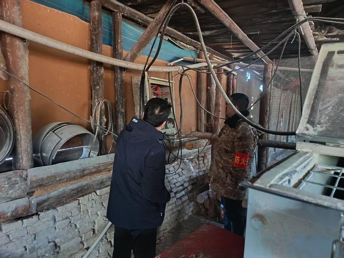 排查過程中,工作人員深入一線、全域摸排,重點覆蓋場區(qū)住戶、管護站、辦公區(qū)、養(yǎng)殖戶等關(guān)鍵區(qū)域。在場區(qū)住戶和辦公區(qū),細(xì)致排查用電線路、取暖設(shè)施、燃?xì)馐褂玫入[患,檢查消防器材配備及有效性,杜絕線路老化、私拉亂接、易燃物堆放等問題;在養(yǎng)殖戶區(qū)域,重點核查飼草堆放、飼料加工區(qū)防火措施,現(xiàn)場簽訂防火責(zé)任告知書,提醒養(yǎng)殖戶規(guī)范用火用電。此外,同步排查倉庫、物資儲備點等重點部位,確保排查不留死角、不漏盲區(qū)。
