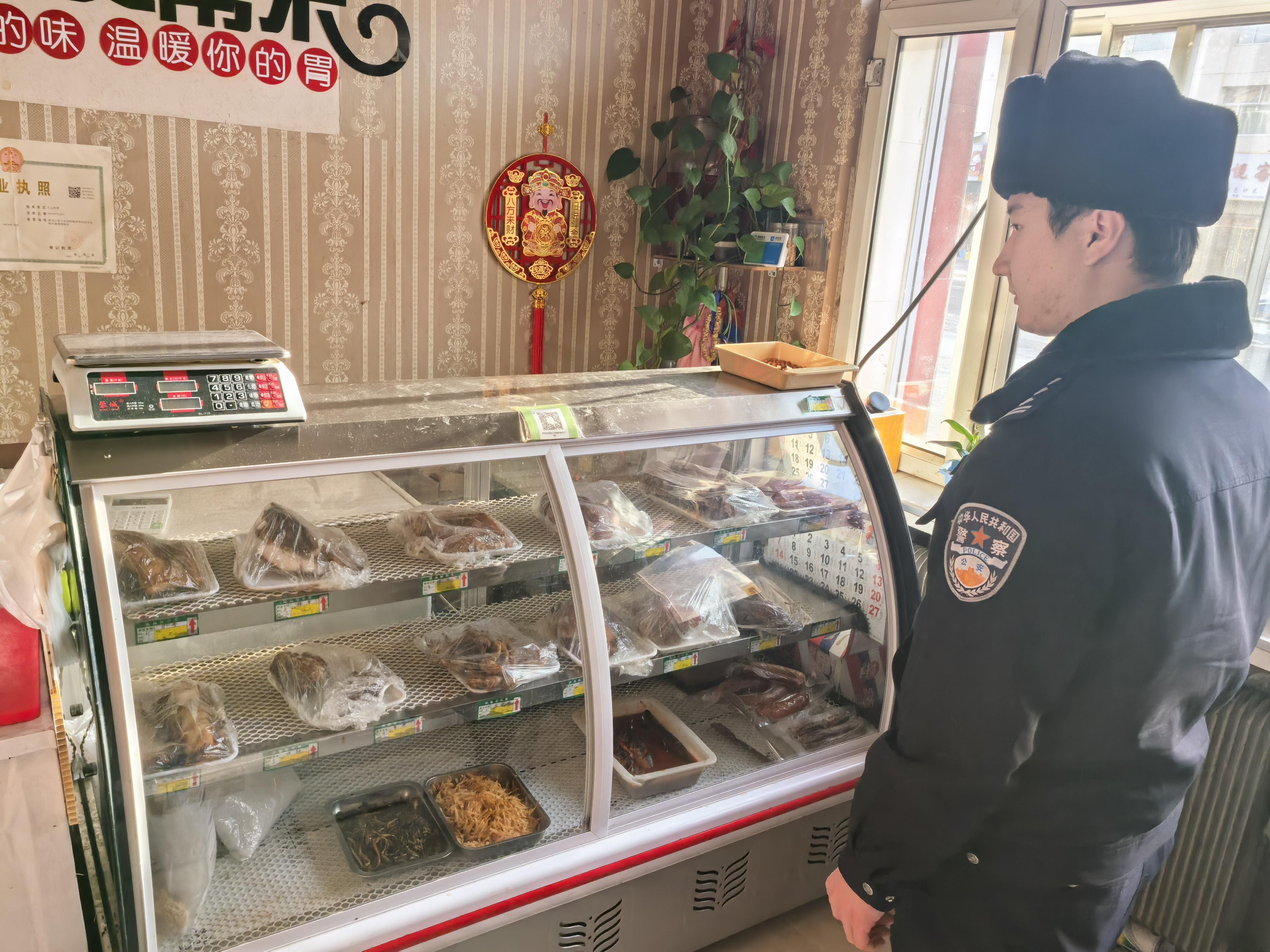 民輔警結(jié)合節(jié)前市場(chǎng)特點(diǎn),采取“明察暗訪+隨機(jī)抽檢”方式,對(duì)轄區(qū)肉制品經(jīng)營(yíng)店鋪開展全面排查。現(xiàn)場(chǎng)檢查中,發(fā)現(xiàn)1家店鋪環(huán)境衛(wèi)生不達(dá)標(biāo),執(zhí)法民警當(dāng)即責(zé)令其現(xiàn)場(chǎng)整改。