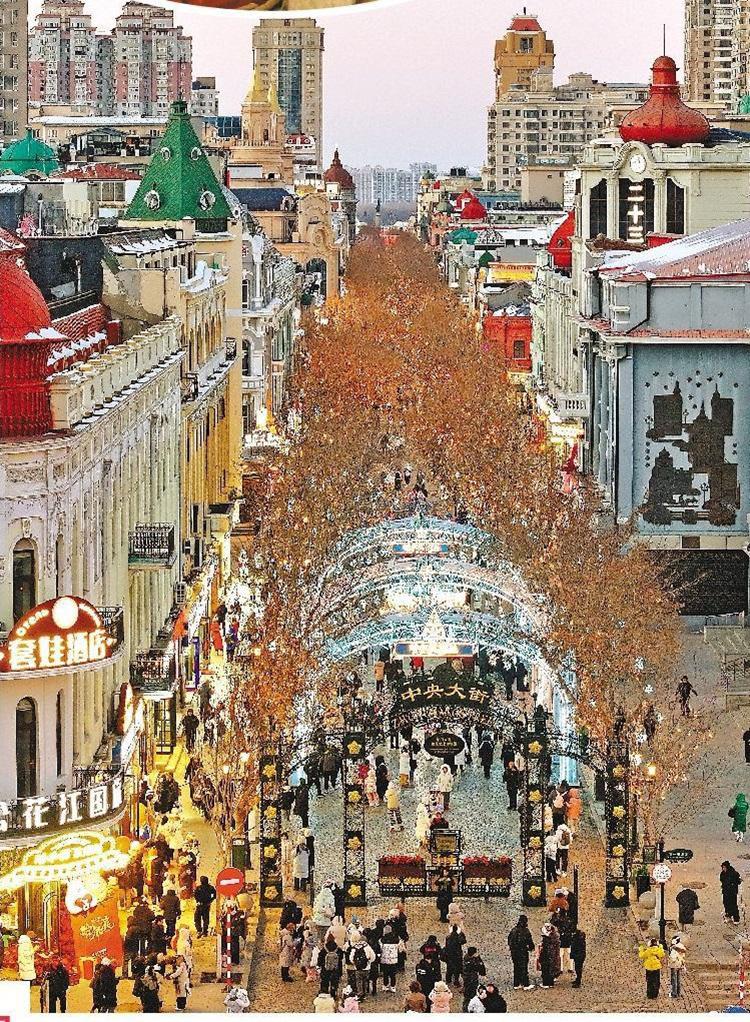 夜幕降臨,哈爾濱市中央大街悄然披上了一襲由光影精心織就的夢(mèng)幻霓裳。流光溢彩的燈光,細(xì)細(xì)勾勒著獨(dú)特建筑的穹頂輪廓。游客不同方言的贊嘆聲此起彼伏,交織在浪漫的氛圍中,共同奏響一曲迎接新春的歡快樂(lè)章。