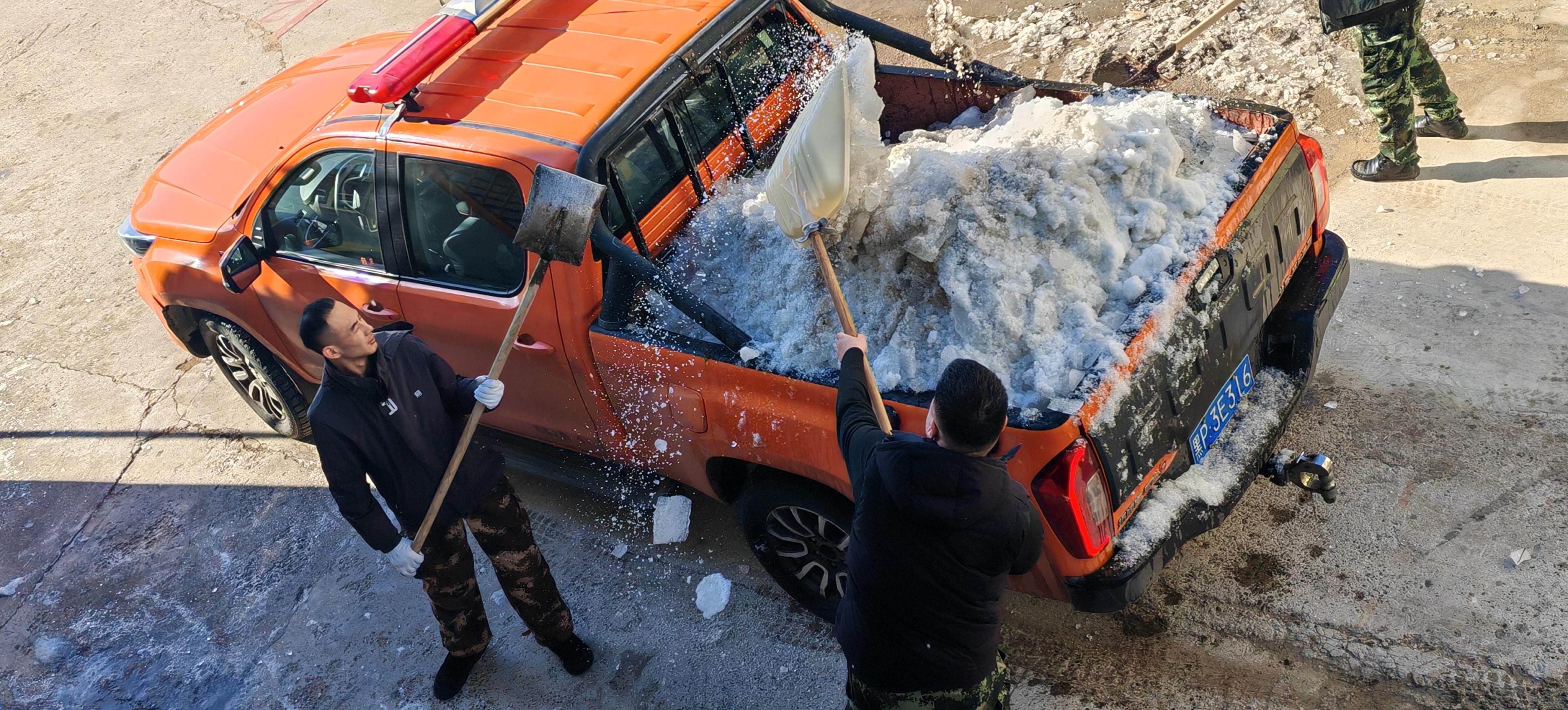 大家主動擔(dān)當(dāng),手持鐵鍬、掃帚等工具,分工協(xié)作、有序作業(yè)。認真鏟除樓前屋后的堅冰,細致清掃樓頂殘雪,不放過一處死角盲區(qū)。盡管春寒尚存,職工們依舊干勁十足,以飽滿的熱情投入到清理工作中。