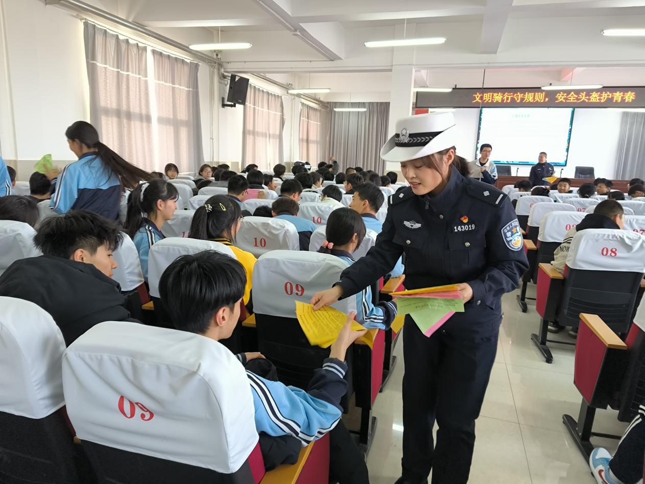 考慮到高中生群體的特點(diǎn),且部分學(xué)生上下學(xué)有騎行電動自行車的需求,在宣講現(xiàn)場,民警用通俗易懂的語言、貼近校園周邊的案例,圍繞電動自行車駕乘安全這一核心,展開交通安全知識講解。并通過播放典型事故案例視頻,以案說法,直觀展示了未佩戴頭盔在發(fā)生碰撞時頭部遭受致命傷害的慘痛后果,以及多人合乘一輛車、追逐打鬧等行為帶來的失控風(fēng)險?;顒蝇F(xiàn)場還設(shè)置了互動問答環(huán)節(jié),同學(xué)們踴躍參與,在輕松氛圍中鞏固了“知危險、會避險”的交通安全知識。