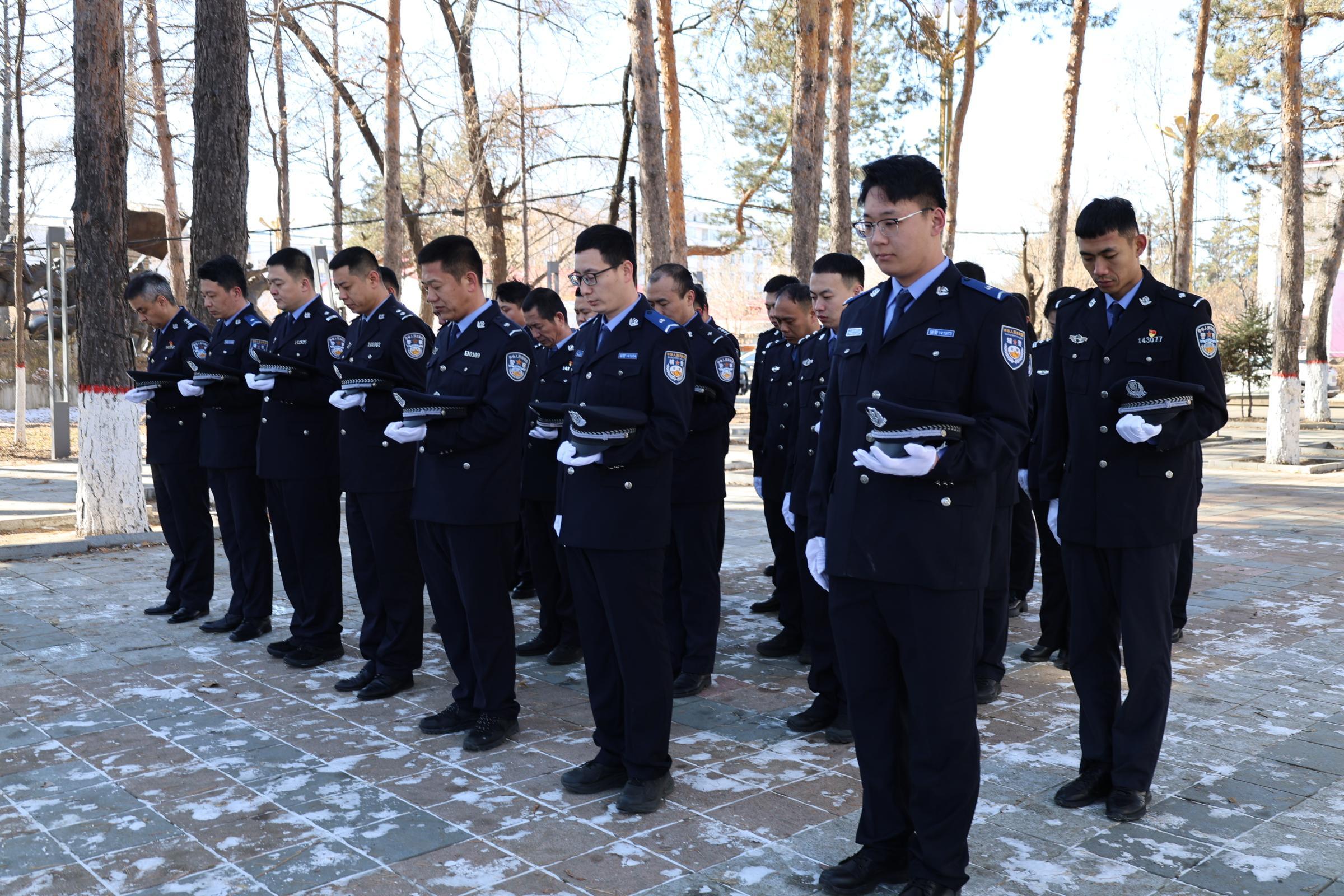 活動伊始,按照既定流程,全體人員肅立,脫帽默哀。伴隨著低沉的氛圍,全體民輔警緩緩脫下警帽,垂首靜立,默哀三分鐘。每一位民輔警都懷著無比沉痛的心情,追憶英烈們的英勇事跡,緬懷他們?yōu)槊褡濯?dú)立、人民解放和公安事業(yè)發(fā)展做出的犧牲。