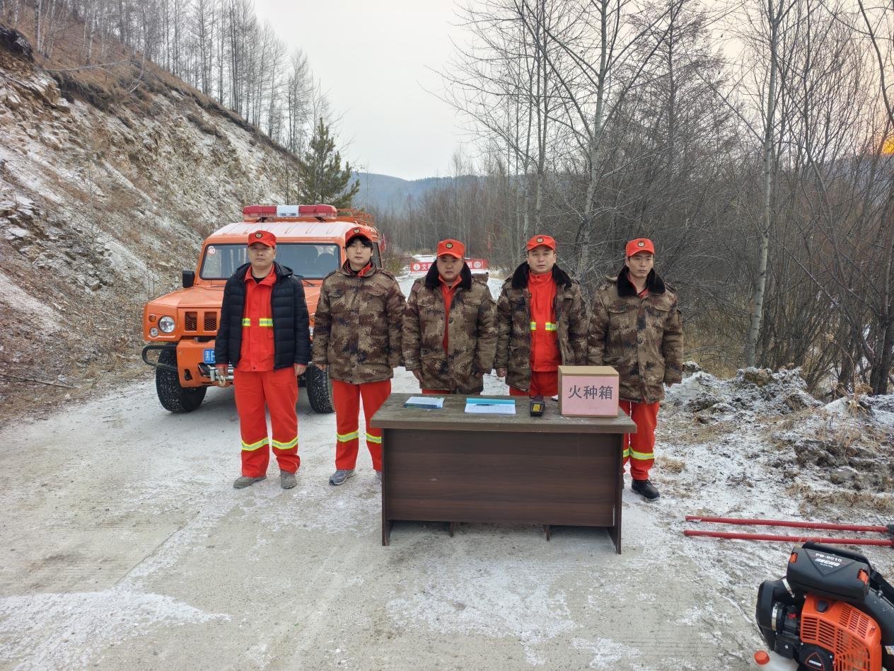 新林林業(yè)局宏圖林場在入山口設(shè)立防火檢查站(李楊 攝)