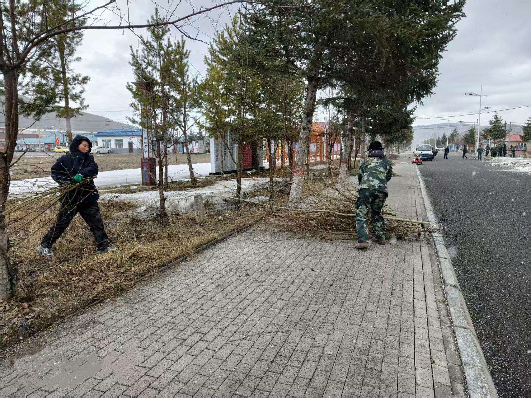 行動中,林場全體干部職工20余人對分擔(dān)區(qū)內(nèi)裸露的白色垃圾、雜物雜草等進(jìn)行了全面的清理。寒風(fēng)里,義務(wù)勞動的現(xiàn)場一片熱火朝天。同志們手持工具,分工協(xié)作、干勁十足。有的揮動鐵鎬,刨開凍硬的積雪,一鎬一鑿鏗鏘有力;有的手持鏟鍬,將碎雪與雜物歸攏成堆,動作麻利有序。在道路兩側(cè)的綠化帶內(nèi),割灌機(jī)轟鳴作響,清理雜亂枝杈,讓林木整齊舒展;手持耙子的同志俯身勞作,細(xì)細(xì)摟凈地面雜草枯葉,清出一片整潔林地。裝車現(xiàn)場更是繁忙,眾人合力將枯枝、雜物、積雪塊搬運(yùn)裝車,此次環(huán)境衛(wèi)生大清理,共清運(yùn)各類垃圾、積雪10余車。
