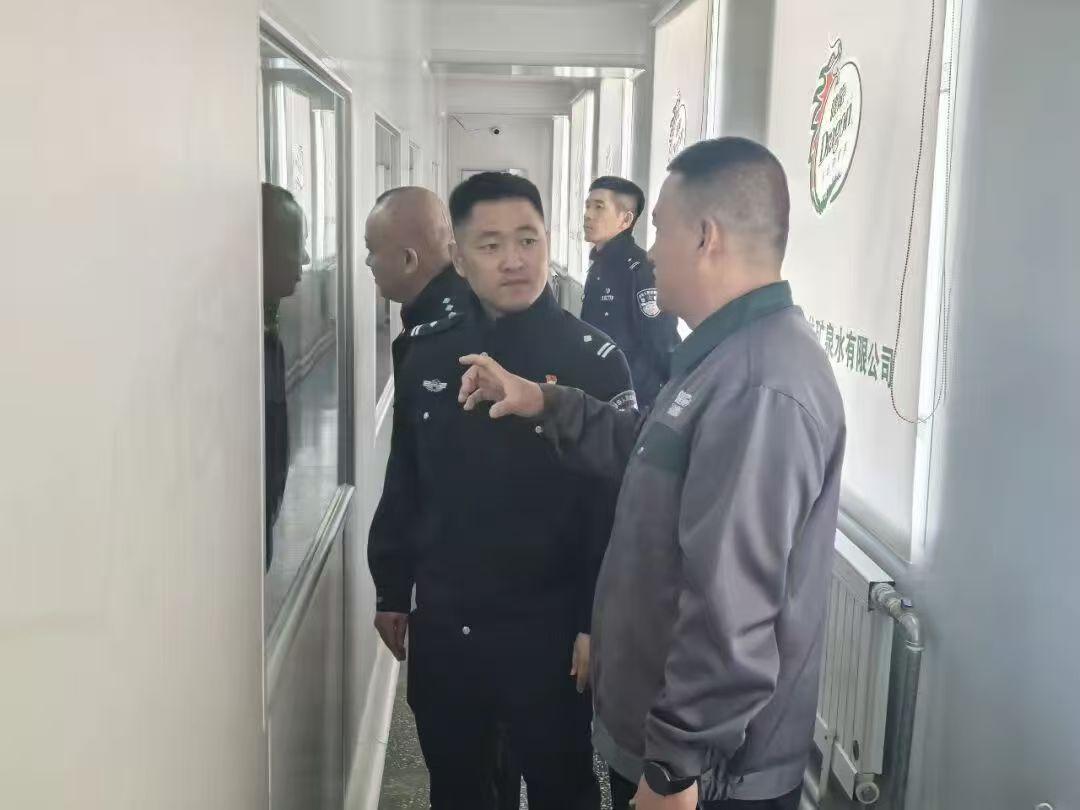 趙宇一行前往健龍礦泉水生產(chǎn)企業(yè),實(shí)地查看企業(yè)生產(chǎn)經(jīng)營(yíng)、內(nèi)部安保、消防安全等工作落實(shí)情況,詳細(xì)了解企業(yè)日常運(yùn)營(yíng)中面臨的治安隱患、矛盾糾紛、安全管理等實(shí)際問(wèn)題。藥泉派出所所長(zhǎng)立足崗位職責(zé),圍繞企業(yè)周邊治安防控、涉企警情處置、安全生產(chǎn)監(jiān)管、反詐宣傳、員工法治教育等工作,與企業(yè)負(fù)責(zé)人進(jìn)行深入溝通交流,現(xiàn)場(chǎng)解答企業(yè)提出的各類政務(wù)咨詢、回應(yīng)問(wèn)題訴求。