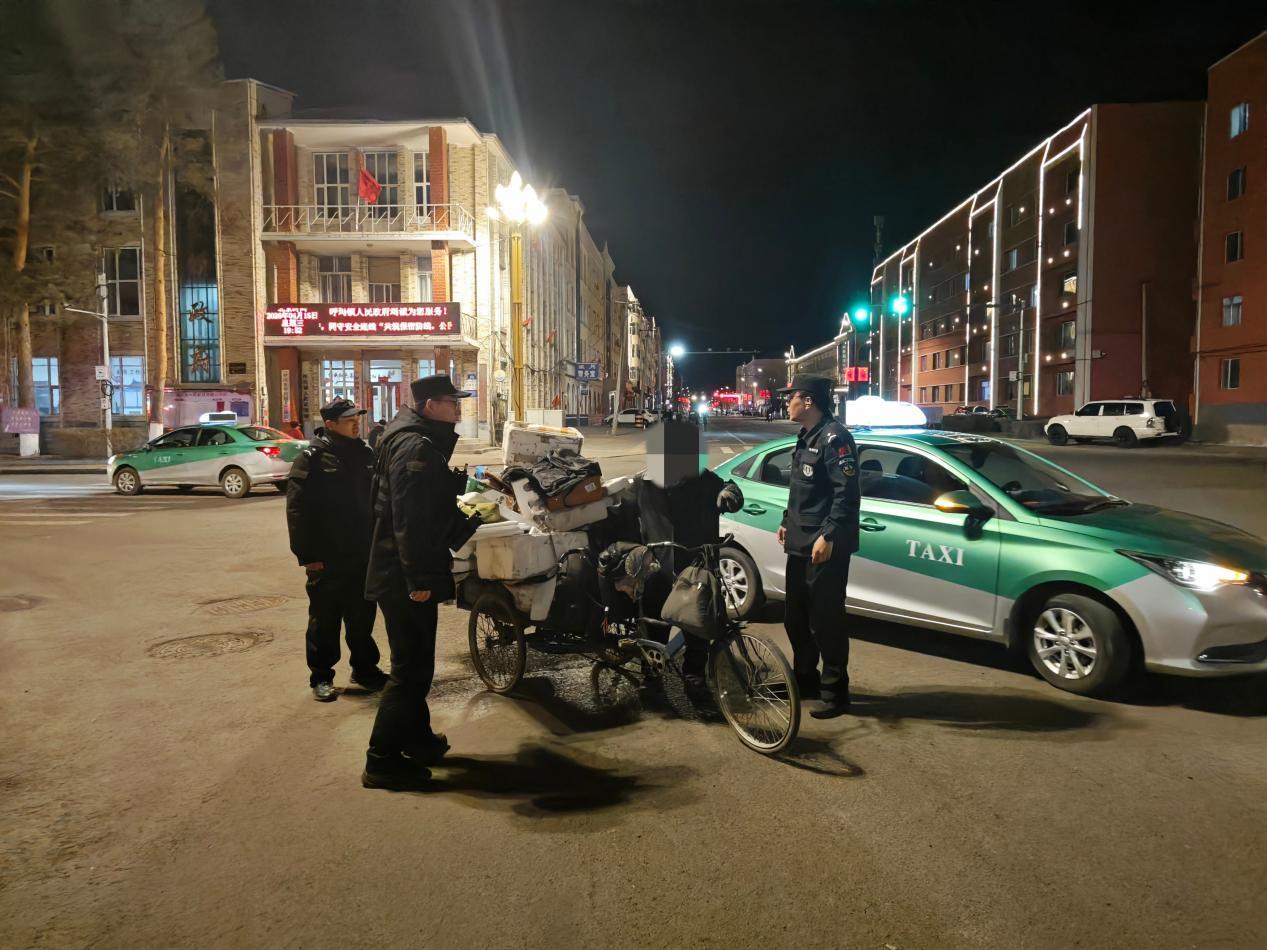到達(dá)現(xiàn)場后,民輔警耐心與老人溝通交流,經(jīng)細(xì)致詢問得知,老人年事已高且患有夜盲癥,夜間視線模糊,外出撿拾廢品后迷失方向,無法辨認(rèn)回家路線??紤]到老人行動不便、夜間出行存在安全隱患,民輔警主動上前,熱心幫助老人推行載滿廢品的車輛,全程悉心陪護(hù)、穩(wěn)步前行,沿著熟悉路段安全將老人送回家中。