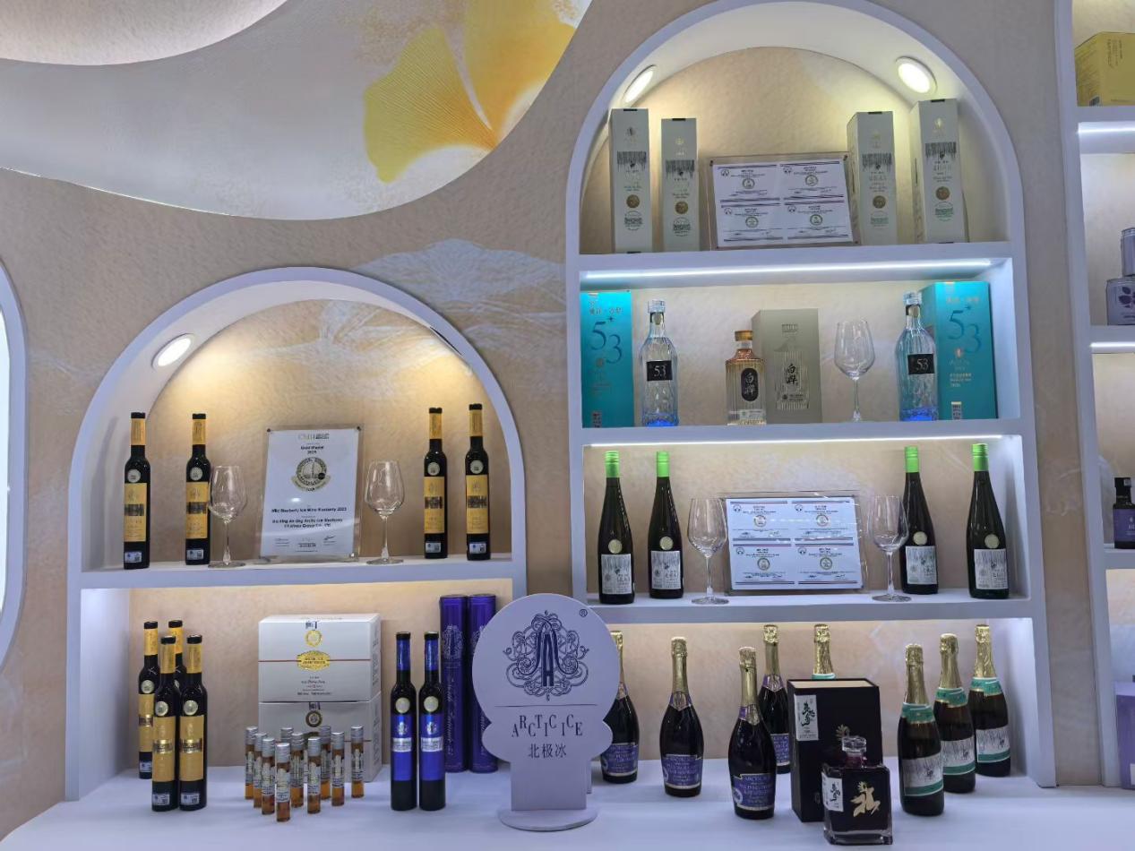 阿木爾林業(yè)局參展上海“進(jìn)博會(huì)”的野生藍(lán)莓冰酒等產(chǎn)品(王力 攝)